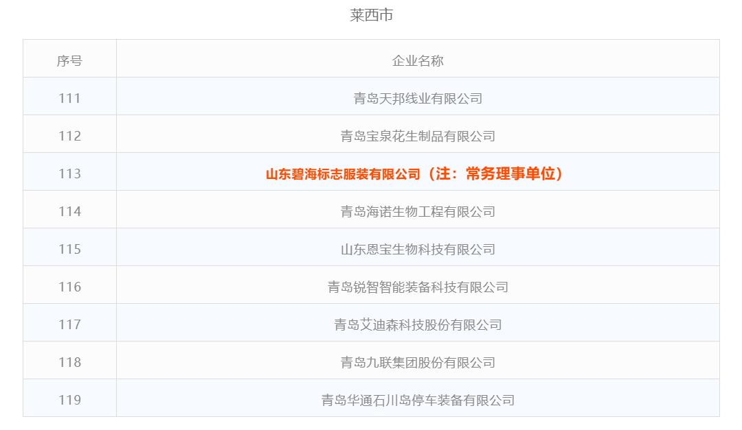 日前,由市工信局组织开展的2021年度“青岛制造”品牌建设重点企业公开遴选工作已经完成,经企业申报、区(市)推荐、专家评审等程序确定124家企业拟入选,山东碧海标志服装有限公司入选。