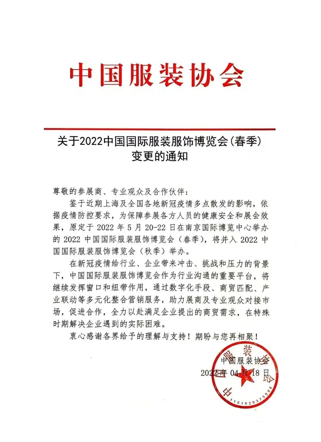 | 据中国服装协会4月18日发布消息称,受上海及全国各地散发疫情影响,原定于5月20日-22日在南京国际博览中心举办的2022中国国际服装服饰博览会(春季CHIC)将并入8月29日-31日(秋季CHIC),本次展会地点为上海国家会展中心。 在此,碧海服饰诚邀您参加本次服装服饰博览会,碧海深信品牌特色,为品牌原力,本届展览会,碧海服饰将以标志服、职业装、工装为主,展现职业装品牌的文化风格。以全新的产品、新款的标志服、精湛的技艺和专业的服务,给您不一样的视觉和穿着感受,体会职业装、标志服、团服盛宴。具体展位位置,后续会通知。碧海服装将密切关注疫情发展动态,并积极与各方协同沟通,期盼能够为各位观众带来一场安全精彩的服装展示。衷心感谢各位的理解与支持!#碧海服装#